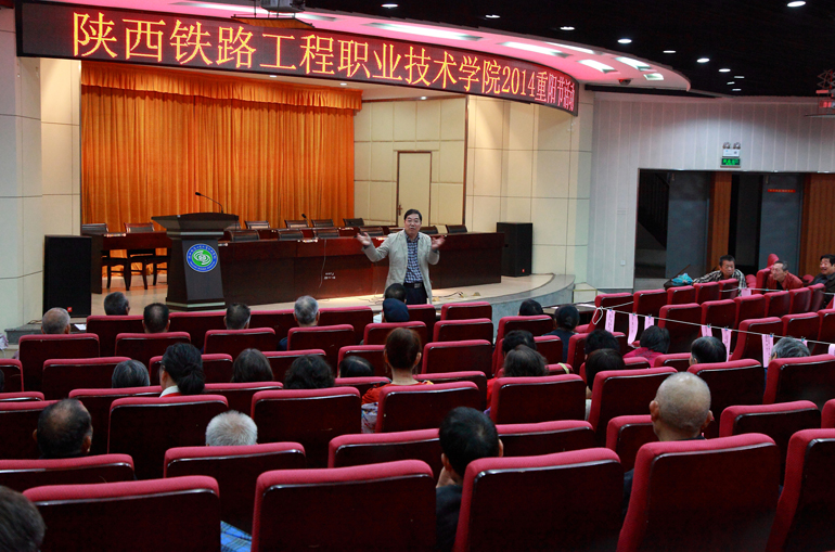 王晖在慰问离退休教职工时向大家介绍学院最新发展成果及发展愿景 杨云峰与离退休教职工一起参加了猜谜活动 瞅一瞅,看一看,猜对了就扯断! 热闹的谜语兑奖登记点 9月28日上午,“重阳节”来临之际,陕西铁路工程职业技术学院工会在临渭校区举办慰问离退休教职工诗词猜谜会,学院在渭离退休教职工六十余人参加了活动。院党委书记王晖到会慰问离退休教职工并讲话。院党委副书记、纪委书记兼工会主席杨云峰也到会慰问并与大家一起参加了猜谜活动。