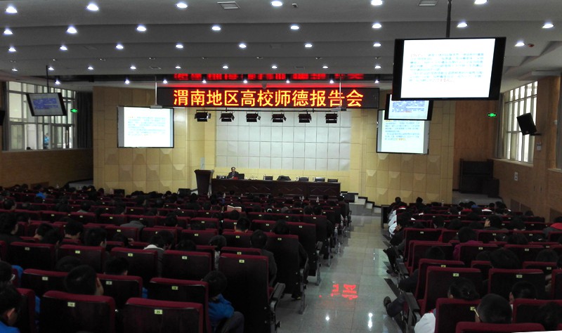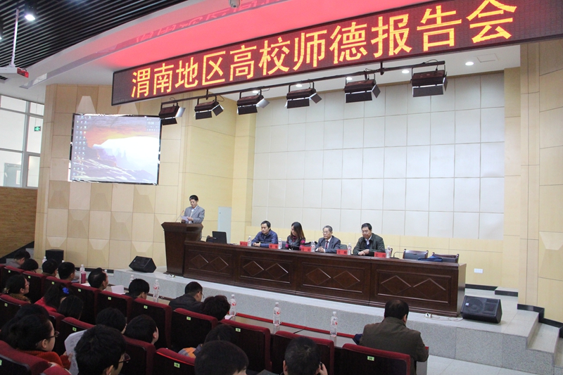 11月20日下午,陕铁院在高新校区举办渭南地区高校师德报告会,邀请陕西师范大学博士生导师金延教授作了《献身教育事业是我们的理想追求》的专题报告。来自陕西铁路工程职业技术学院、渭南师范学院、渭南职业技术学院、西安航空职业技术学院的500余名师生聆听了报告会。教育厅教师工作处副处长樊婧、教育厅教师工作处韩润社,学院党委书记王晖、党委副书记车绪武出席报告会。报告会由副院长王闯主持。