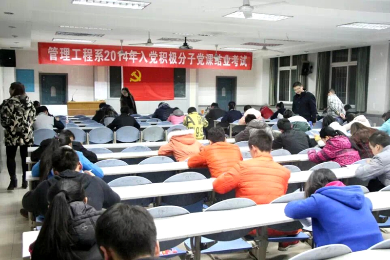 考试中,同学们认真分析题意,仔细冷静作答;监考人员严格履行职责,考场秩序井然。此次考试侧重考察积极分子对新党章、习近平总书记系列讲话精神、十八届四中全会精神,社会主义核心价值观等方面的掌握情况。