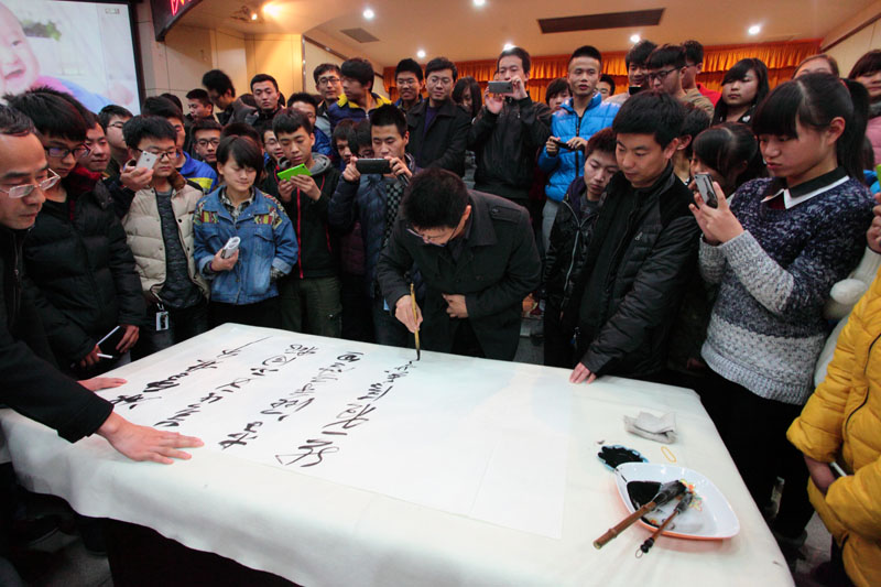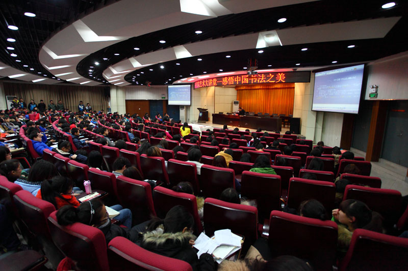 两个小时的讲座使现场师生深深陶醉在书法艺术的魅力中,纷纷表示每一个中国人尤其是当代大学生肩负着传承和发扬中国书法艺术的重任,应将书法艺术融入个人的学习、实践和生活中。(李博/文 蒋萌、陈星衡/图)