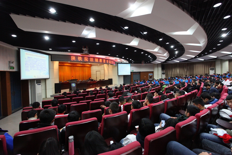 12月4日是我国首个国家宪法日,当晚,陕西铁路工程职业技术学院工会邀请思政部教师、渭南市临渭区法院陪审员李莉老师为全院师生作了题为“弘扬宪法精神,建设法治中国”的法治教育专题报告。学院党委副书记兼工会主席杨云峰、近三年新进教师和400余名学生聆听了报告。