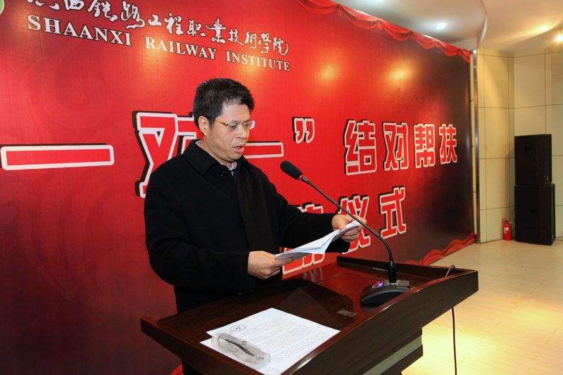 12月18日,陕铁院在临渭校区学术报告厅隆重举行2014—2015学年“一对一”结对帮扶活动启动仪式,共157名教师与家庭经济困难学生结成帮扶对子,送去温暖和爱心。学院党委书记王晖,院长王长友,党委副书记、纪委书记杨云峰,副院长王闯、焦胜军、李林军等院领导出席启动仪式。参加结对帮扶的教师、受助学生、学生代表和陕西电视台、陕西人民广播电台、渭南电视台等媒体记者参加会议。仪式由学院党委副书记车绪武主持。