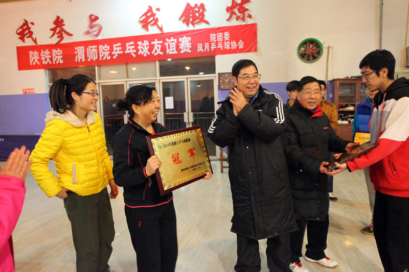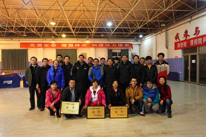 12月18日晚,由院工会乒乓球俱乐部组织的冬季教职工乒乓球比赛团体赛在临渭校区乒乓球馆落幕。经过首轮比赛,13支代表队有8支队伍成功晋级。经过激烈的淘汰比拼,机关一分会凭借精湛球技,成功问鼎年度团体总冠军。基础课部分会和轨道工程系分会分获二、三名。党委书记王晖,党委副书记、工会主席杨云峰分别为获奖队伍颁奖。(蒋萌、王静) 比赛现场全力以赴专注为得分加油王晖为获奖队伍颁发奖牌学院领导与参赛选手合影留念