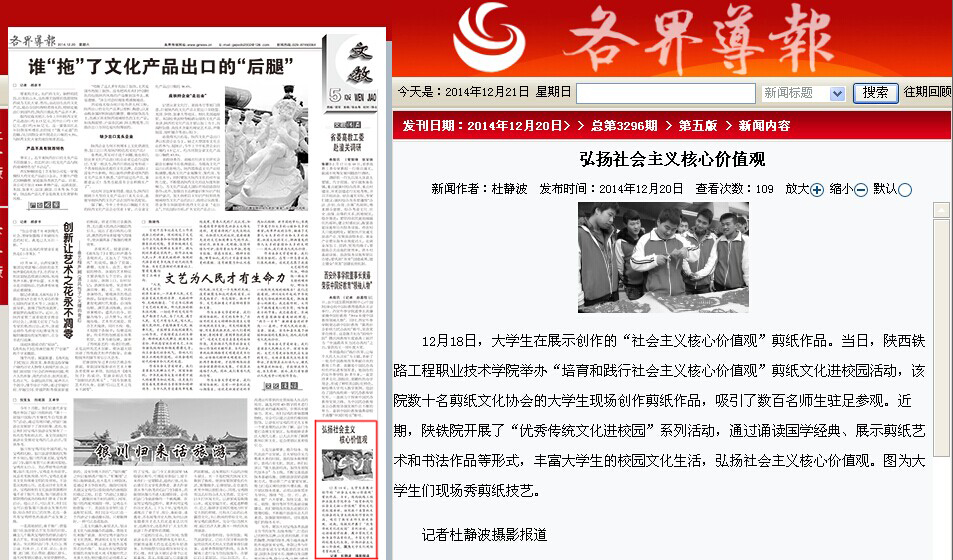 2014年12月20日各界导报第5版题:弘扬社会主义核心价值观