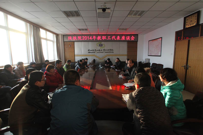 12月24日下午,学院在临渭校区十一楼会议室召开2014年教职工代表座谈会,来自全院14个党总支的26名教职工代表参加了座谈。座谈会由党委组宣部部长郑毅刚主持。