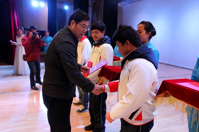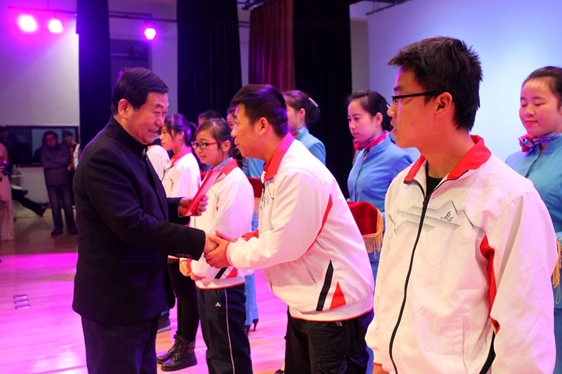 元旦中,王晖书记、王长友院长为在国家级技能大赛及学院第九届技能大赛中获奖的学生颁奖。在热烈的掌声中,学院领导与获奖学生代表逐一握手,激励他们不忘校训,再接再厉,勇攀高峰,多创佳绩。(欧阳莎、王帅/文 蒋萌、徐昊、李振、蒲文凯/图)