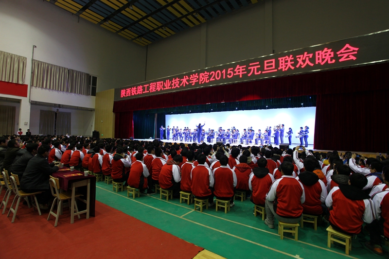 12月29日、30日晚,陕西铁路工程职业技术学院2015年元旦联欢晚会分别在临渭校区、高新校区文体中心隆重举行。学院党委书记王晖、院长王长友、党委副书记车绪武、杨云峰,副院长王闯、焦胜军、李林军出席观看了演出。观看演出的还有学工部、团委、思政部、各系相关领导及1500余名2014级学生。