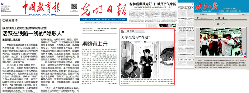 2、《中国教育报》、《光明日报》、《中国青年报》、《人民铁道报》、陕西省教育厅门户网站等中省媒体报道学院人才培养、内涵建设等方面的情况331次,学院影响力继续扩大。