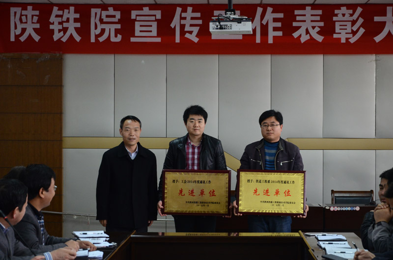 3月19日下午,陕铁院2014年度宣传工作表彰大会在临渭校区12层会议室召开,学院党委副书记车绪武,党委宣传部负责人,各系党总支书记,二级网站、宣传栏负责人,各系通讯员等相关人员参加会议。