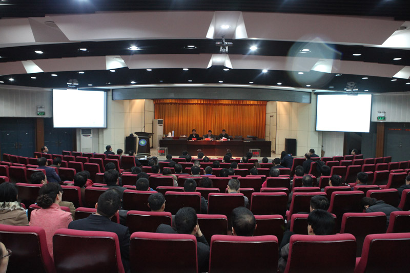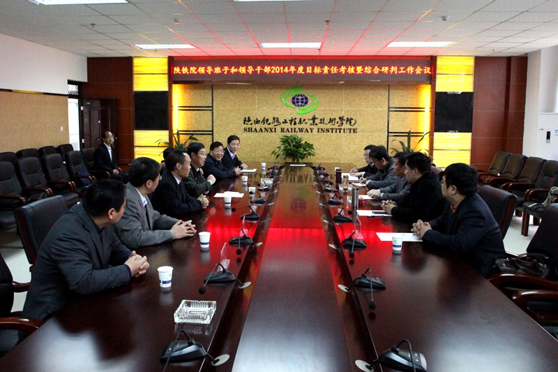 3月25日下午,按照省委组织部、省委高教工委的安排,学院召开领导班子和领导干部2014年度目标责任考核暨综合研判工作大会,陕西省高等学校年度目标责任考核组组长、省委高教工委委员、稳定办公室主任张玉明,省委高教工委组织部副部长井浩,省教育厅科研处副处长郭鹏程,省委高教工委统战部副调研员艾天浩,省委高教工委组织部干部陈建平等一行5人,对学院领导班子和领导干部进行年度目标责任考核和综合研判。学院党委委员、纪委委员、学术委员会委员、工会委员,副高职称专业技术人员,副处职岗位以上领导干部共计90余人参加了会议。大会由党委书记王晖主持。