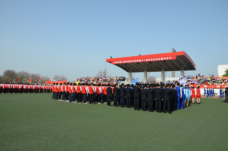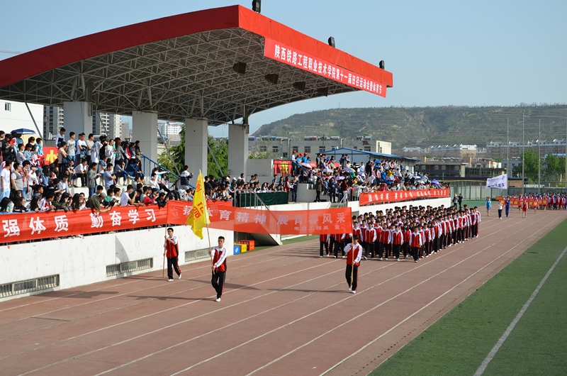 4月15日下午,陕西铁路工程职业技术学院第十一届田径运动会暨体育节分别在临渭和高新校区拉开帷幕。学院党委书记王晖,党委副书记、纪委书记杨云峰,副院长王闯、李林军分别出席两校区开幕式并观看了团体操表演。学院各系部负责人、全体教师与2015级学生参加了运动会开幕式。