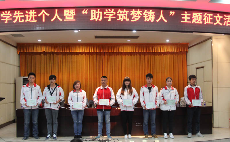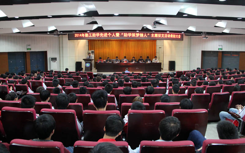 会上,学生处处长亢新河宣读了《关于表彰2014年度勤工助学先进个人的决定》和《关于表彰奖励2014年“助学筑梦铸人”主题征文获奖个人的决定》。两位获奖同学代表分别发言。