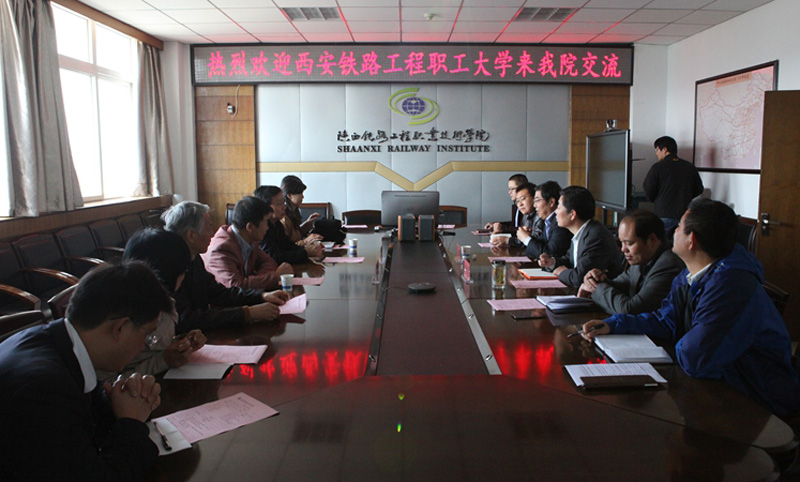 双方共同观看了学院宣传片《魅力陕铁院》,王晖和赵金江分别介绍了陕铁院和西安铁路工程职工大学的基本概况,双方就BIM技术的研发与应用、相关土建实验室的建设进行了深入交流。