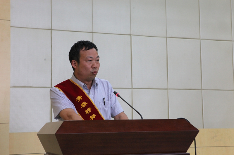 “十佳助人为乐学生”获奖者吴泽阳的父亲吴军作为家长代表也作了发言,他首先对学院全体领导、教师对于孩子的精心培养表示感谢,勉励同学们要始终牢记陕铁院“德修身 技立业”的校训,感恩老师,以优异的学习成绩、工作业绩回报恩师、学校和社会,为实现伟大的中国梦和每一个人的心中的梦想而努力奋斗!