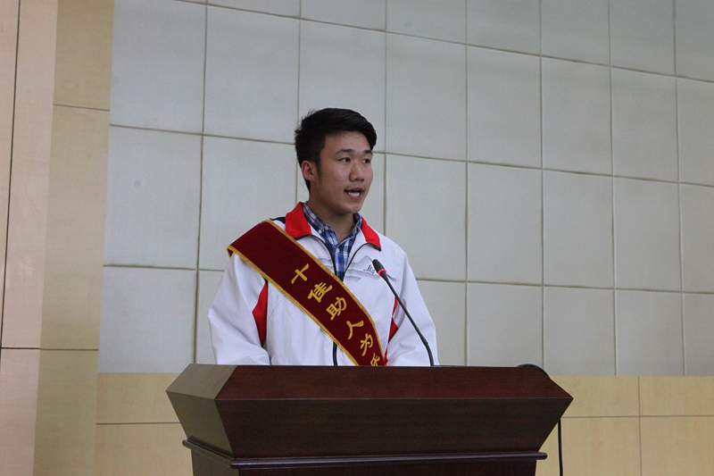 五类十佳青春榜样学生代表分别作了汇报发言。他们精神饱满、感情真挚、语言质朴,事迹感人、催人泪下,感染和教育了现场的每一位学生。