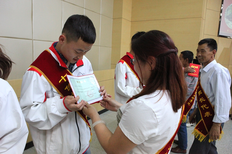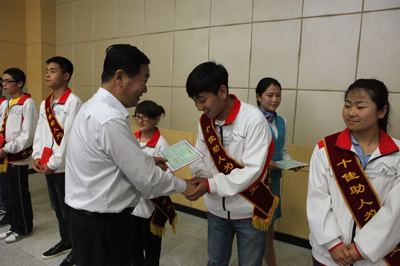 会上,王长友为受表彰学生颁发了证书。王闯宣读了表彰文件。