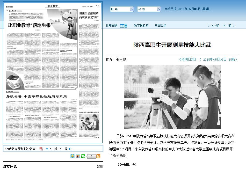 2015年5月5日光明日报第15 版题:陕西高职生开展测量技能大比武
