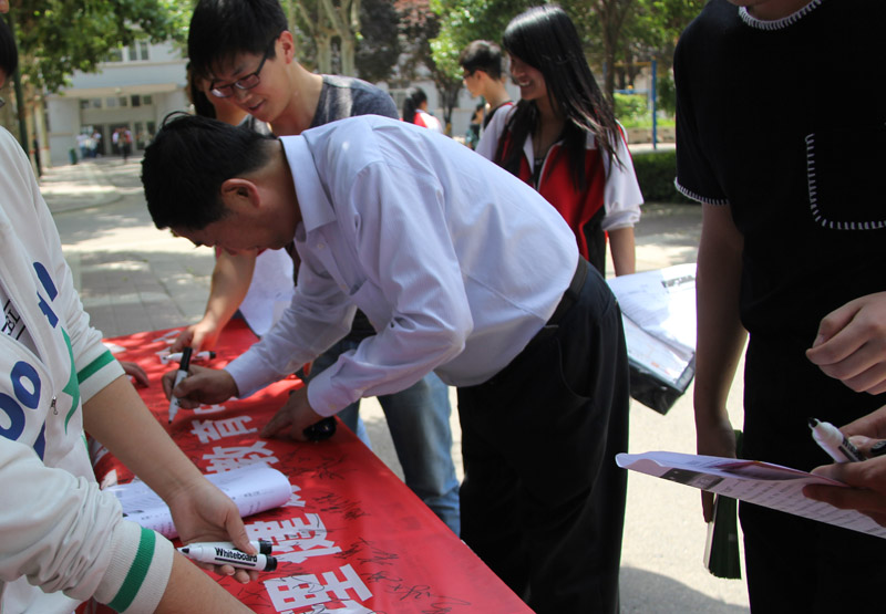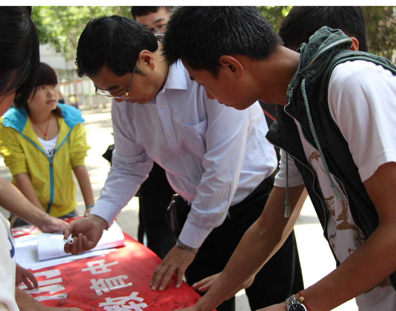 学院党委书记王晖、院长王长友、党委副书记车绪武、副院长王闯等各位领导和各系部老师与同学们都积极参与了当日的签名活动。(任林林)