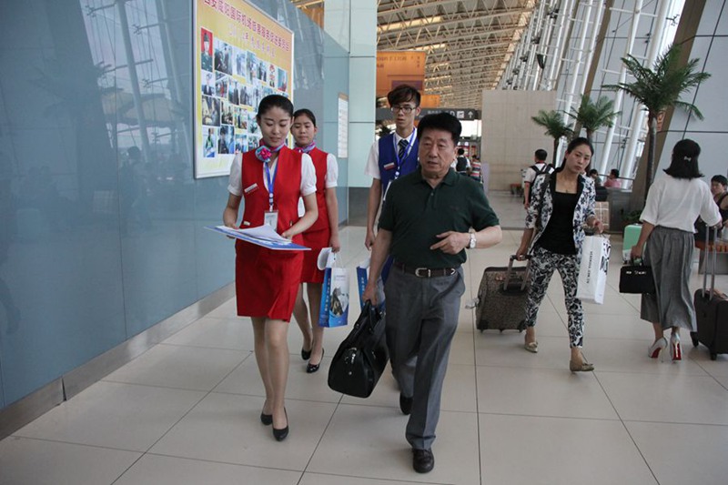 5月19日至21日,“第六届全球秦商大会”在陕西渭南隆重召开,陕铁院23名铁道交通运营管理专业特色班的学生作为志愿者,助力秦商大会,受到省、市领导及参会客商的一致好评。 会议期间,车辆服务、会务服务和会议服务等岗位,到处活跃着陕铁院志愿者的身影。为做好本次志愿者服务工作,同学们将转身、微笑、站姿、走姿等每个动作都分解练习过近百次,以完美的精神面貌应对挑战。(郭联俊/文 惠晨/图) 机场迎接宾客会场引导