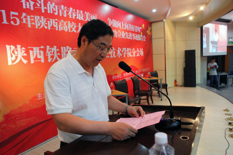5月27日下午,2015年陕西高校大学毕业生建功立业先进事迹报告会在陕铁院临渭校区学术报告厅举行。学院领导王晖、王长友、车绪武、杨云峰、王闯、焦胜军、李林军以及相关部门负责人出席报告会,高新校区师生代表采用同步视频系统和临渭校区师生共800余人观看报告。