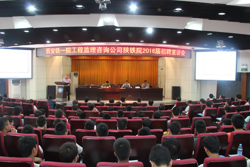 会议现场 5月26日上午,西安铁一院工程咨询监理有限责任公司陕铁院2016届招聘宣讲会在学院临渭校区学术报告厅举行。学院相关专业的200名2016届毕业生参加了宣讲会。本次招聘共涉及铁工、道桥、测量、轨道、建筑、机电、建管、电气化等12个专业,提供岗位40多个,经过简历筛选、现场面试等环节,最终30名毕业生成功与企业签订就业协议。(姚天魁)招聘现场