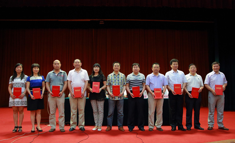 院党委副书记、工会主席杨云峰(右二)登台领奖 6月10日,省教育工会在临潼召开2015年理论研究和调查研究工作会议时,宣读了“关于表彰2014年度优秀调研成果的决定”,其中,学院共获得三项奖励:陕铁院工会获工会理论研究优秀组织奖,院党委副书记、工会主席杨云峰与学院教师李昌峰联合撰写的论文《刍议高校创建“三型”工会的方法》获优秀理论研究成果二等奖,学院教师张玉卓撰写的论文《高校青年教师职业精神存在的问题与对策研究》获优秀理论研究成果三等奖。(季露)