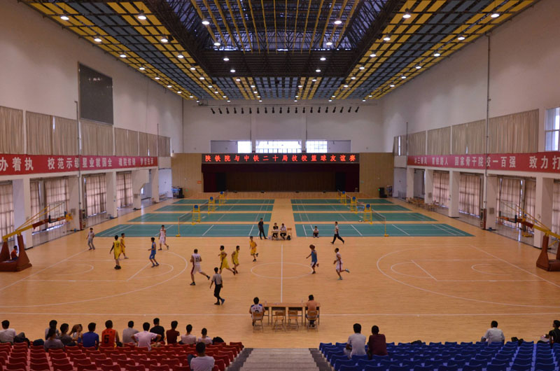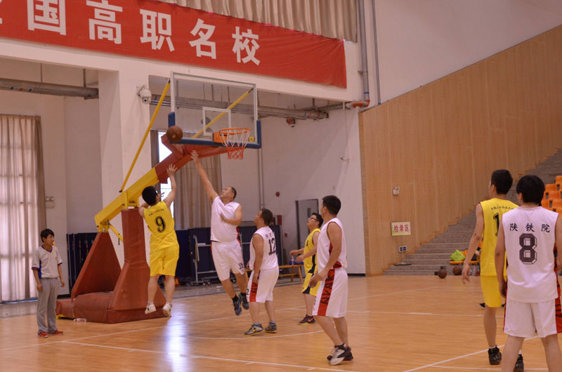 篮球赛现场 6月12日下午,陕铁院与中铁二十局技校篮球友谊赛在高新校区文体中心举行。学院青年教工篮球队、学生篮球队与中铁二十局技校教工篮球队、学生篮球队进行了两场比赛,分别以37:28和75:42的比分获得胜利。比赛中学院教职工和学生拼搏进取,展现了良好精神面貌。(黄新静/文 谭大恒/图)比赛现场