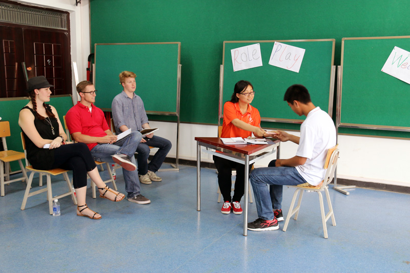 期间,他们与教研室教师深度交流、探讨教学,走进“英语角”与学生密切互动,举办讲座、开展研讨式教学。外国志愿者配合教研室开展的一系列活动,激发了学生的英语学习兴趣,拓展了国际视野,提高了学生的英语口语交际能力。