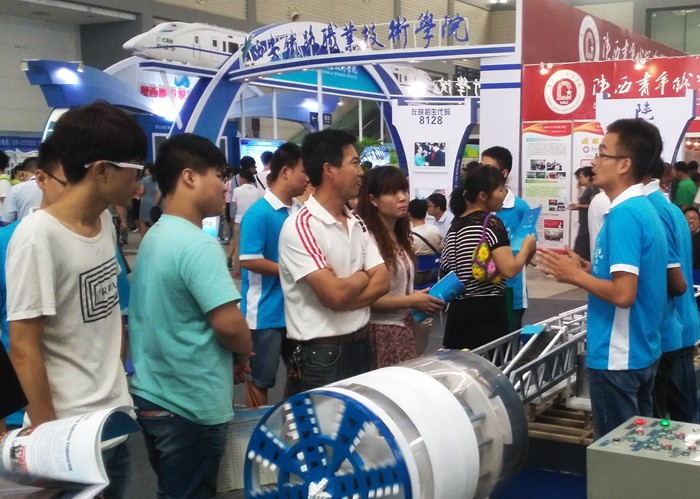 6月26日,第五届陕西高等教育博览会暨招生咨询会在西安曲江国际会展中心开幕。陕西铁路工程职业技术学院大学生现场展示自主研制的土压平衡盾构仿真模型,吸引了众多参会人员驻足观看。据悉,盾构机作为隧道专用工程机械,集光、机、电、液、传感、信息技术于一体,是目前承载世界最前沿技术的隧道施工机械,也是衡量一个国家装备制造业水平最具代表性的重大关键装备。