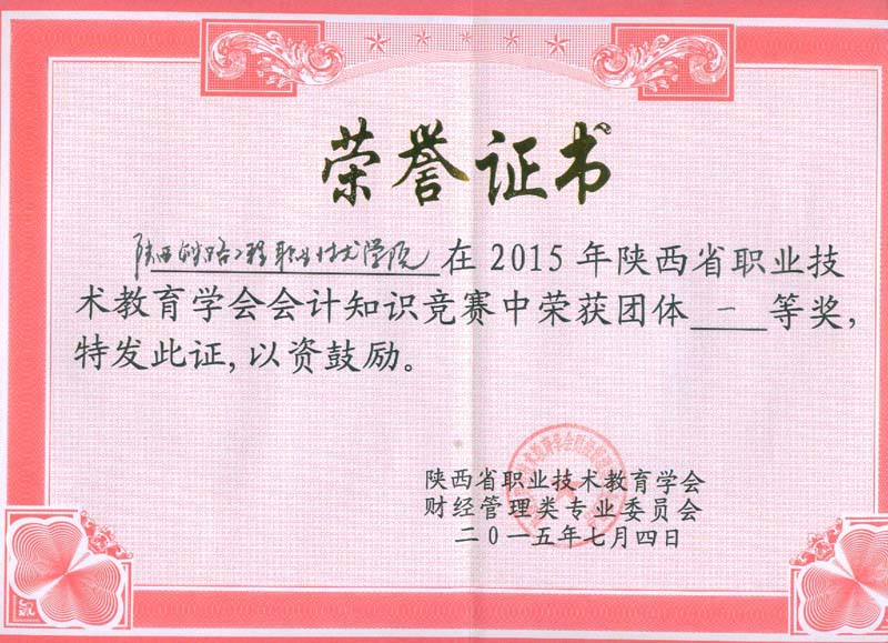 7月3、4日,由陕西省职教学会主办、在延安职业技术学院举办的陕西省会计知识竞赛中,学院和管理工程系会计与审计专业6名学生获团体一等奖和个人一等奖1项、二等奖2项、三等奖3项,物流教研室张月芳老师获优秀指导教师。