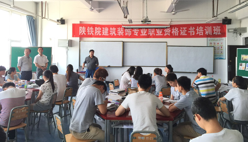7月7日上午,第二届陕铁院装饰专业职业资格培训班开班仪式在高新校区GS418教室举行,此次培训由院建筑工程系和渭南市室内装饰协会共同举办,共涉及“装饰施工员”、“装饰预算员”、“装饰质量监督员”和“室内设计师”四个职业资格证书的培训和技能鉴定。参加本届培训班的学员共48人,其中37人为学院2013级装饰专业学生,11人为渭南市各装饰企业技术人员。