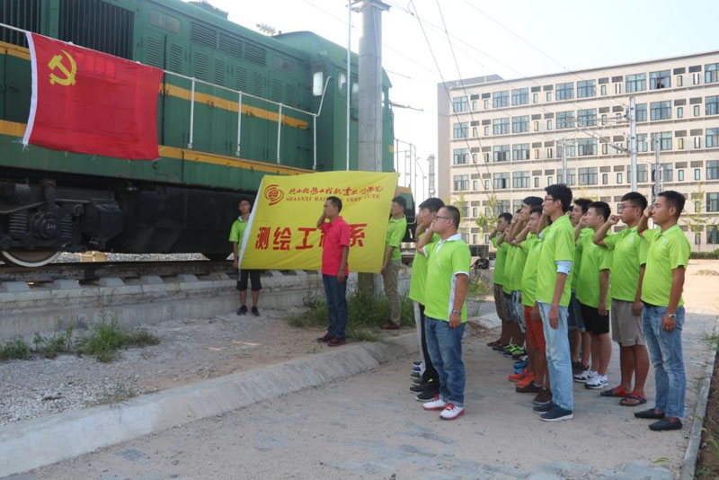 测绘系学生党支部组织所有在校学生党员在高新校区高铁实训基地举行了新党员宣誓活动纪念抗战胜利70周年。其中,12名新党员和13名老党员面对鲜艳的党旗进行庄严宣誓,向中国人民抗日战争暨世界反法西斯战争胜利70周年致敬。在党旗下,新老党员进行了交流和发言,表达爱党爱国之情,表示将铭记历史,刻苦学习,努力工作,为学院争光,为党旗添彩。