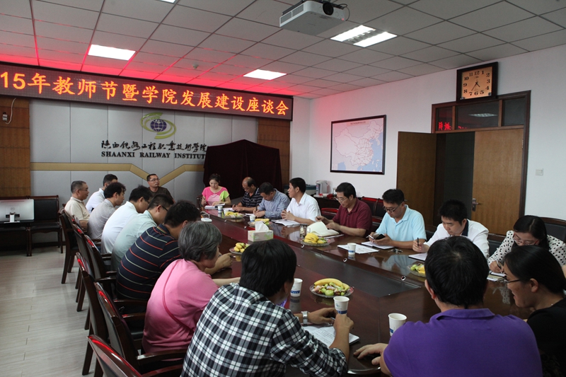 9月9日下午,陕西铁路工程职业技术学院在临渭和高新校区同时召开教师节暨学院发展建设座谈会。党委书记王晖、院长王长友出席两校区会议,与35名师生进行了座谈,听取了与会人员就教育、教学、管理、服务等方面提出的意见,和对学院“十三五”规划提出的建议。党委副书记杨云峰、副院长王闯主持会议。人事处、工会、宣传部等部门负责人参加了会议。