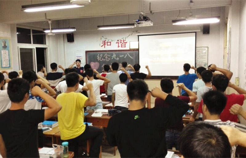 “起来,不愿做奴隶的人们……”在临渭校区B204教室,电信系学生以一曲国歌拉开了“九·一八”爱国主义教育活动的序幕。同学们通过观看介绍“九·一八”事变视频、小组讨论发言等形式重温历史。铭记历史,珍爱和平,成为同学们的共识。(刘江平)
