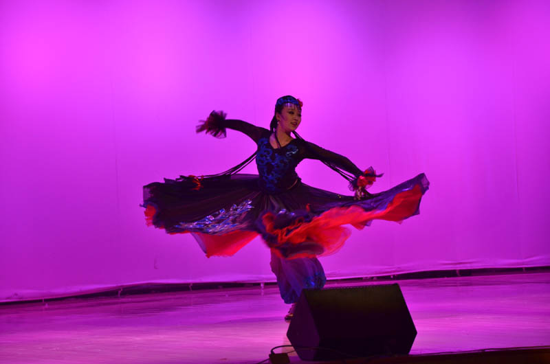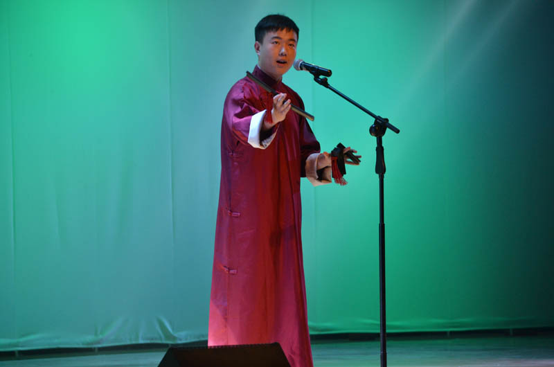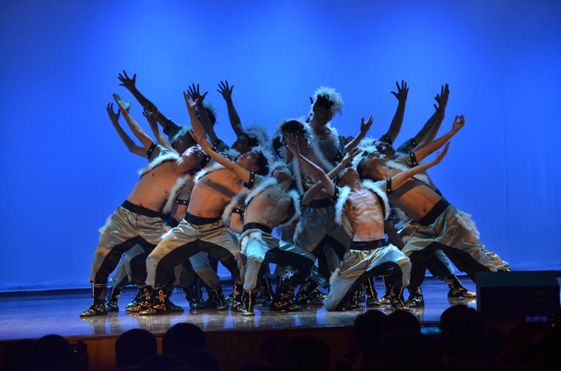 文艺晚会师生同台汇演,友好单位激情演出,大学生艺术团舞蹈队带来的《美人如画》、《街舞》、《狼图腾》、《大漠之花》等舞蹈精彩纷呈,模特队的《服装秀》展示了学生青春魅力,王升同学的快板《三打白骨精》赢得掌声不断,二胡、小提琴、钢琴演奏和63785部队的教官与学院师生合作的电声乐队及渭南火车站职工表演的爵士舞令现场一片沸腾,杨旭老师的独舞《花儿为什么这样红》婀娜多姿,深深地感染了全场观众。
