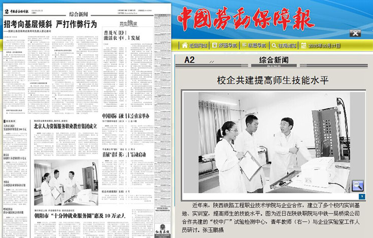 2015年10月17日中国劳动保障报第2版、中国测绘报第70期第3版题:校企共建提高师生技能水平