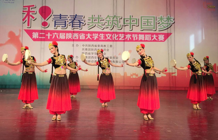 学院大学生舞蹈队获得第二十六届陕西省大学生文化艺术节舞蹈大赛二等奖比赛现场 11月1日,第二十六届陕西省大学生文化艺术节舞蹈大赛在西安落幕,学院大学生舞蹈队喜获二等奖。学院学子在杨旭、张楠老师指导下,在大赛不分专业与非专业,不分本科与高职的情况下,与省属各院校及舞蹈类专业学生同台竞技,最终以9.28分的成绩从全省47支代表队中脱颖而出获大赛二等奖,成绩为高职院校第一位。(黄新静/文 张楠/图)