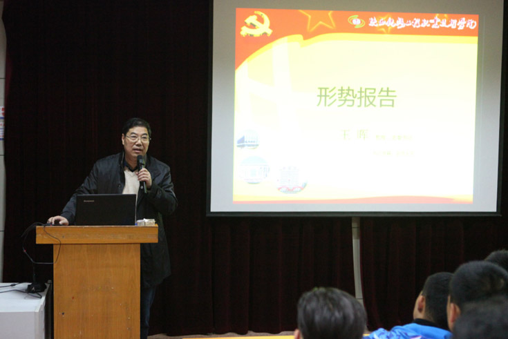 11月1日晚上,学院党校2015年下半年党员发展对象培训班最后一讲在临渭校区B100阶梯教室圆满完成,学院党委书记、党校校长王晖教授作当前形势报告。临渭校区道桥工程系、机电工程系、管理工程系和电信工程系学员以及部分辅导员130余人聆听报告。报告由组织部部长郑毅刚主持。