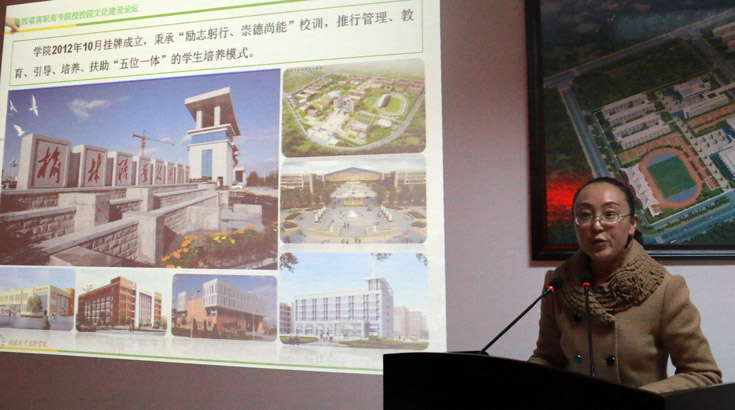 王晖在开幕式上发表了热情洋溢的致辞。他代表全体师生员工向参会的各位领导专家表示热烈的欢迎,同时介绍了学院的基本情况和学院校园文化建设的做法和取得的一些成绩。他呼吁全省高职院校共同努力,建设和培育具有时代特征、职业特点、高职特色的校园文化项目,以德树人、以文化人,使更多的师生从中受益,使学校称为一个传承文化、引领职业文明和发展的人才基地和精神家园。