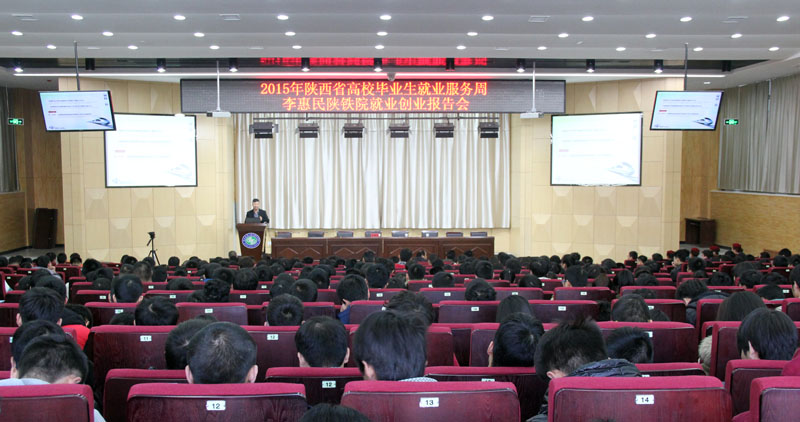 11月26日下午,学院举行“转变就业观念,增强就业实力暨2016届大学生就业形势”报告会。在高新校区三楼会议室,副院长王闯和相关部门负责人与陕西省人才交流服务中心副主任李惠民一行进行了座谈交流。随后,在高新校区博爱厅,学院领导、系部负责人、教师代表以及高新校区学生代表600余人聆听了报告,临渭校区500余名师生同时观看了视频直播。