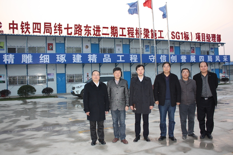 与中铁四局梁建军(左二)、朱小龙(右二)在项目部合影