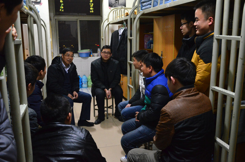 王晖在宿舍与同学们交谈