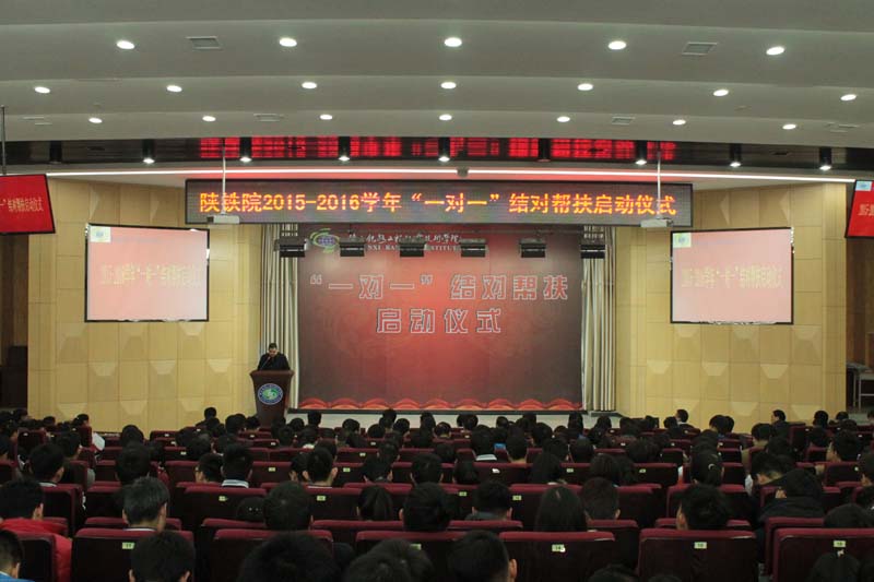12月29日下午,陕铁院2015-2016学年“一对一”结对帮扶启动仪式在临渭校区学术报告厅和高新校区博爱厅同时举行,此次是学院第五次启动“一对一”结对帮扶仪式,全体教职工积极响应,主动参与,305名教师与家庭经济困难学生成功结对。学院党委书记王晖、党委副书记车绪武、杨云峰,副院长王闯、李林军等院领导出席启动仪式,参加结对帮扶的教师、受助学生、学生代表参加了启动仪式。仪式分别由学院副院长王闯、李林军主持。