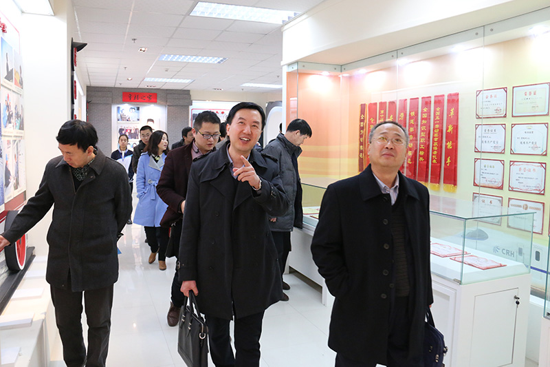 王津陪同来宾参观窦铁成事迹馆
