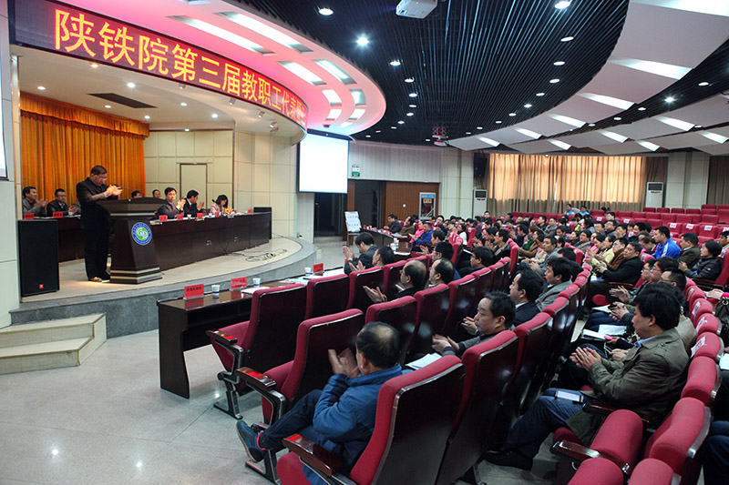 随后,代表们在学术报告厅听取了小组组长代表王云波、李晓艳作的小组讨论情况汇报,表决通过了《陕西铁路工程职业技术学院十三五发展规划》。张修身宣布了第三届工会委员会及经审委员会选举结果。