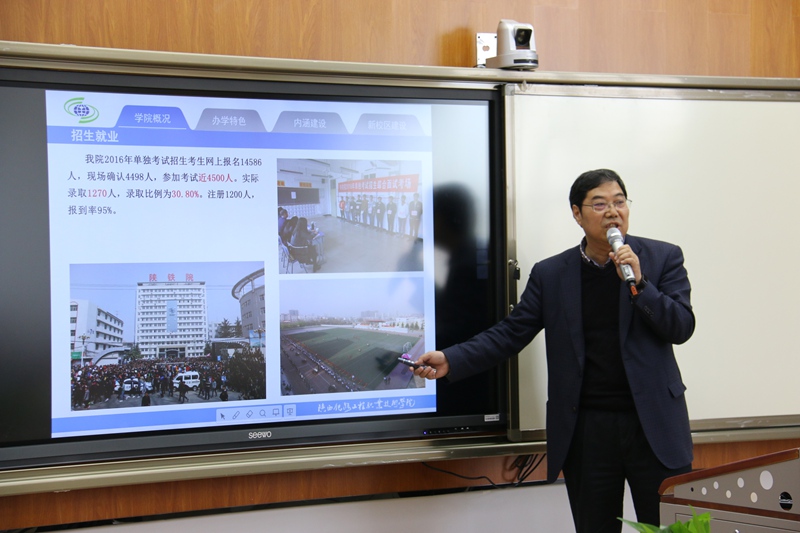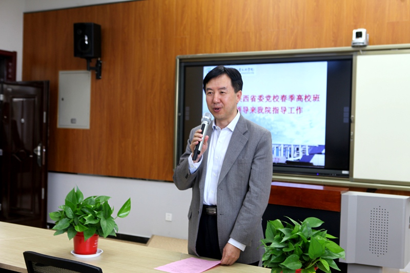 陕西省委党校进修部主任范勇表示,很高兴能够到陕铁院参观交流。陕铁院良好的校园建设和环境给学员们留下了深刻的印象,陕铁院近几年发展迅猛,他对学院取得的可喜成绩表示祝贺。