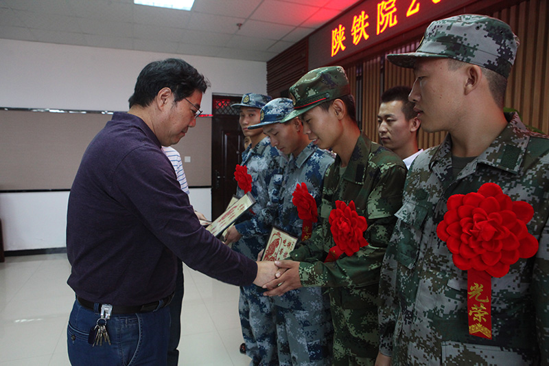 9月20日下午,学院在高新校区行政楼北楼三楼会议室隆重举办2016年新兵入伍欢送会。学院党委书记王晖代表学院向入伍新兵赠送了礼物,家长给新兵佩戴大红花。出席会议的还有学院副院长王闯。学工部、武装部,有关系部负责任人,入伍学生代表、学生家长代表参加了会议。