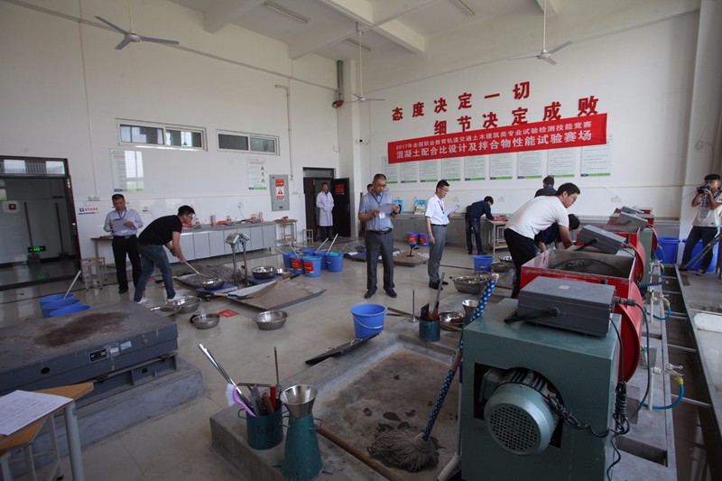 5月12日至14日,由中国职业技术教育学会轨道交通专业委员会主办,全国职业教育轨道交通建筑工程专业教学指导委员会和陕西铁路工程职业技术学院承办的2017年全国职业教育轨道交通土木建筑类专业试验检测技能竞赛在陕铁院高新校区举行。来自全国15所院校的15支代表队的60余名参赛队员,参加混凝土配合比设计试验和砂的颗粒级配试验等两个项目的角逐。