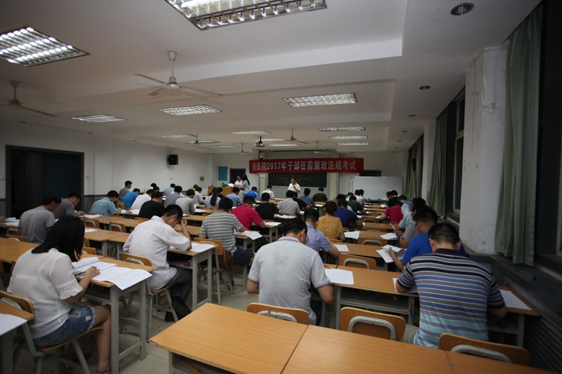 考试现场 近期,学院进行了2017年竞聘处科级干部拟任人选的任职前公示。6月28日,学院举办了陕铁院2017年干部任前廉政法规考试,56名处级干部和53名科级干部在临渭校区B100和B200教室分别参加了考试。考试期间,各处科级干部严肃认真答题,考试公正有序进行,考场氛围良好。该项工作由纪委办会同组织部、人事处相关人员进行。(张玉卓/文 杨光/图)