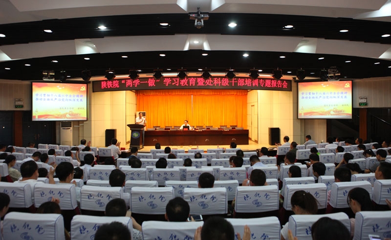 7月7日下午,学院在临渭校区学术报告厅举办“两学一做” 学习教育暨处科级干部培训专题报告会。党委书记王晖、党委副书记车绪武、党委副书记、纪委书记杨云峰、党委委员、副院长王闯、李林军等领导出席会议,全体处科级干部和教职工党员参加了会议。会议由王晖主持。